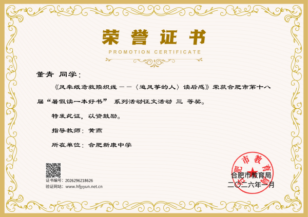 此次活动不仅是一次文字的比拼,更是一次心灵的交流。合肥新康中学的同学们利用暑期时光沉浸书海,将阅读的感悟与思考凝于笔端。佳绩的取得,离不开学校对书香校园建设的常抓不懈。合肥新康中学通过营造浓厚的阅读氛围、开设丰富的阅读课程,引导学生在阅读中开阔视野、润泽心灵、提升素养。