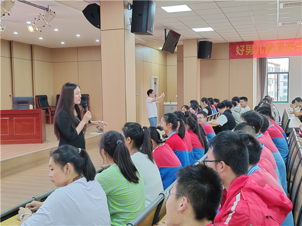 对于如何化解中考压力,张老师带来了一套“情绪释放疗法”,现场指导同学们去学习实践,同学们学习兴趣浓厚,表现活跃,心情更是得到了极大的放松。为激励同学们勇敢地面对中考压力,鼓舞同学们斗志,张老师还带同学们进行了励志宣誓,同学们誓言铿锵,斗志昂扬。