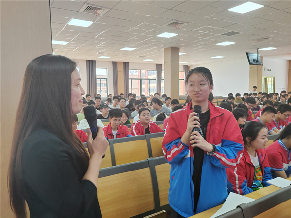 张老师的讲座从“你面临哪些压力”“要正确认识压力”“如何化解考前压力”三方面展开。她多次与同学们互动,现场了解同学们面临的压力具体有哪些,以及这些压力给同学的学习和生活带来了哪些影响。重点引导了同学们如何调整心态,如何在压力下正常的生活和学习。