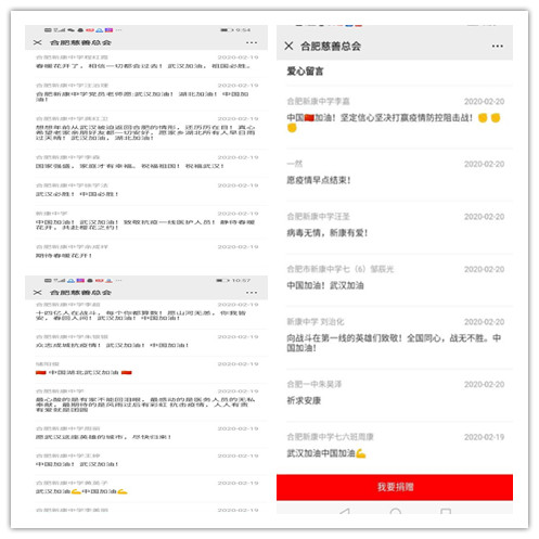 捐款凝聚力量,留言温暖人心。初中部副校长龚红卫 “真心希望老家亲朋好友都一切安好”充满牵挂之情;程红霞老师“春暖花开了,相信一切都会过去”正消解其爱人的担忧;“愿山河无恙,你我皆安,春回人间!武汉加油!中国加油!”既是李超老师的心声,更是全体新康人的心愿。