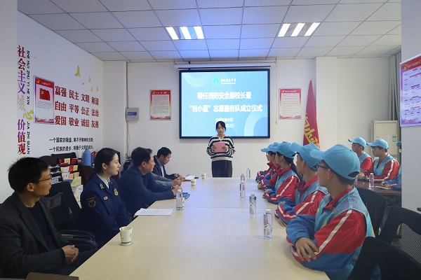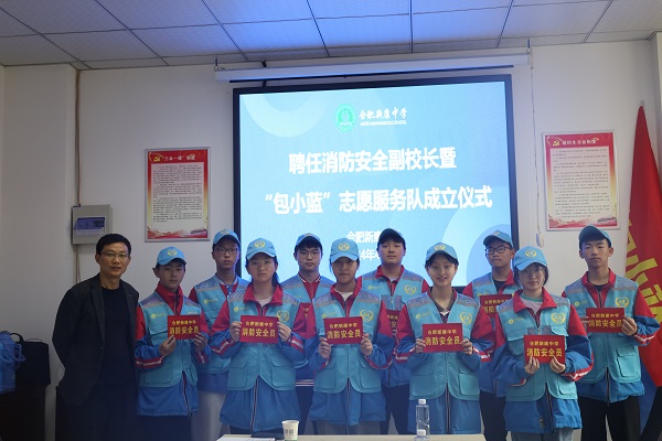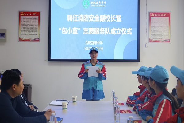 徐学法校长发言:祝贺合肥新康中学“包小蓝”志愿服务队成立,各位队员要努力学习消防安全知识,并应用在日常生活中。日常工作中,做好消防安全知识的宣传,让更多人了解消防安全的重要性,提高安全防范意识,增强自救能力。