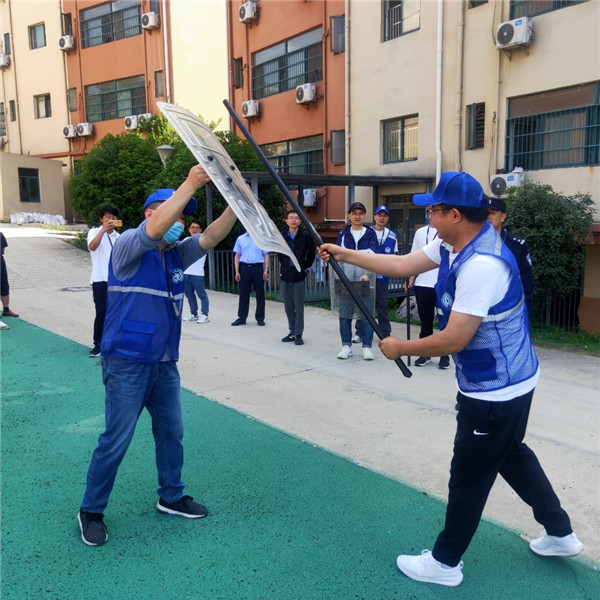 为进一步加强“平安校园 和谐校园”建设,防范校园突发暴力事件,增强学校防暴力突发事件应急处置能力,2023年4月20日上午,合肥新康中学法治副校长彭蓬警官带领滨湖派出所民警到我校对“护校队”的老师们进行了防暴恐安全培训及演练活动。