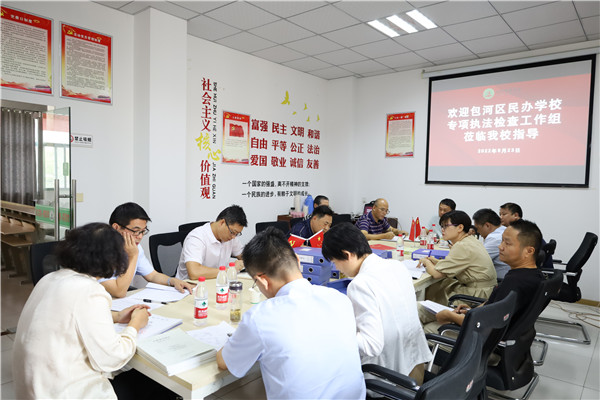 为进一步推进我市规范民办教育发展工作,努力办好更加公平、更有质量、人民满意的教育,9月23日下午,包河区教体局教育科科长韩眷眷带领包河区民办学校专项执法检查工作组一行领导到我校开展民办中小学校专项执法检查工作。市教育局督导专员顾明、合肥新康中学党支部书记兼校长王俊、党支部专职副书记陈晓永等校领导全程陪同。