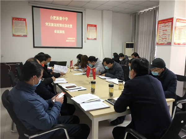 为统筹做好学校常态化新冠肺炎疫情防控工作,进一步提高学校防控疫情快速响应能力,全面提升各学部、各部门应对突发疫情的组织管理水平,3月21日上午,合肥新康中学2022年春季学期新冠肺炎疫情防控应急处置桌面演练在行政楼会议室举行。会议由党支部书记、校长王俊主持,各学部、各部门负责人参加演练。合肥市教育局督导专员顾明到场观摩并作点评。