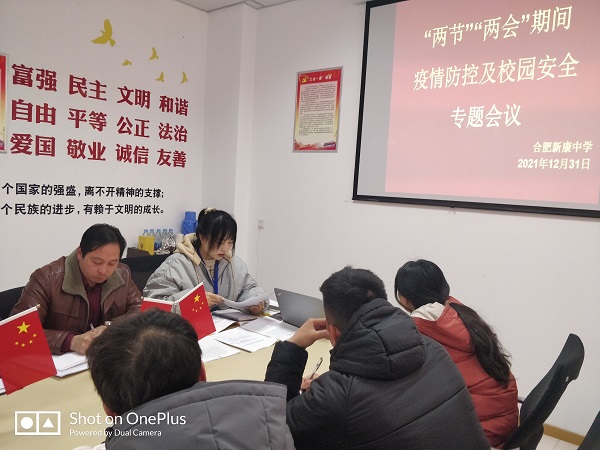 12月31日,合肥新康中学召开“两节”和两会期间疫情防控及校园安全专题会议,学校领导班子及中层干部参加会议。