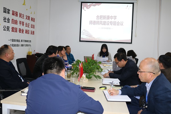 为师之道,重在学养,贵在师德。师德是教师“立身之本”,是教师之灵魂。为进一步加强我校教师师德师风建设,培养一支有理想、有道德、有学识的教师队伍,合肥新康中学于4月25日召开了师德师风建设专题会议。