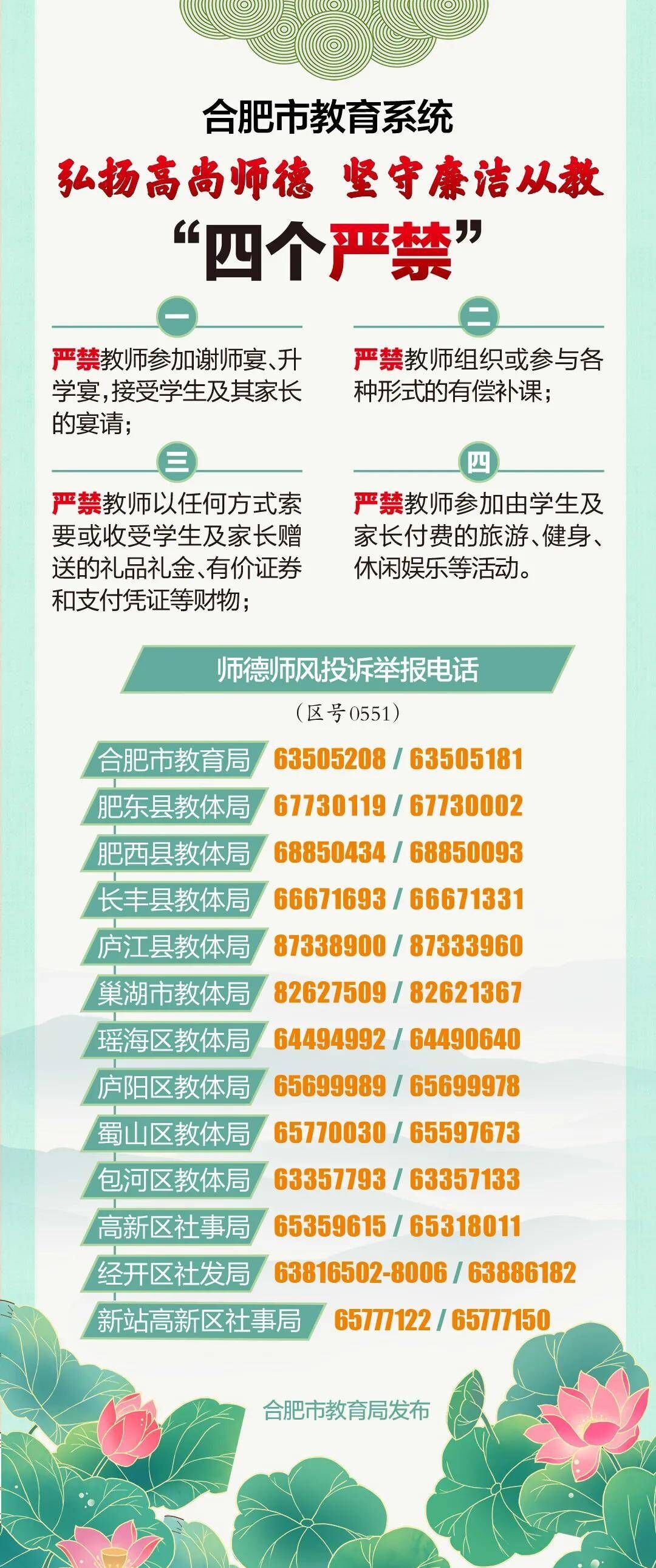 合肥市教育系统弘扬高尚师德坚守廉洁从教“四个严禁”