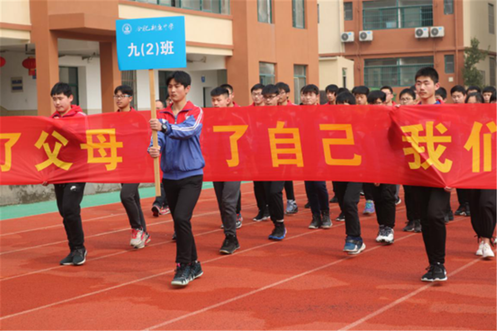 活动开始,毕业班同学分别手持各自的中考目标条幅,踏着整齐自信的步伐、喊出响亮的班级口号,在全体师生们送来的热情的掌声中光荣入场。他们声音直达云霄,气势震撼天地,展现了毕业班学子们决战中考、一往无前的雄姿。