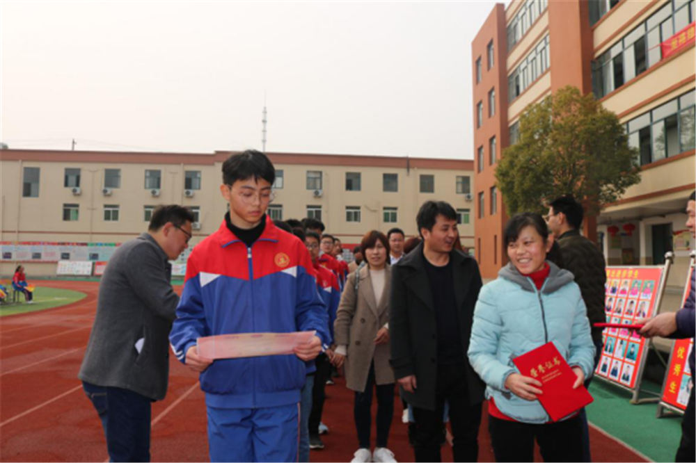 先总结,再出发。学校随后对七、八、九年级获得特优生、优秀生和突出进步生的学生进行表彰,特为三个年级的优秀学生家长颁发荣誉证书。徐校长、李校长、龚校长为家长和学生们颁奖,并合影留念。此次家长和学生们同获荣誉,让学校与家长之间实现互动联系,让学生与家长互相认可,让学校教育与家庭教育实现合力,共同推进学生的成长。