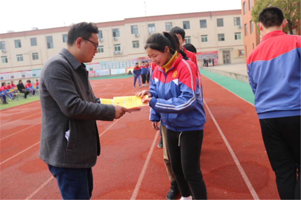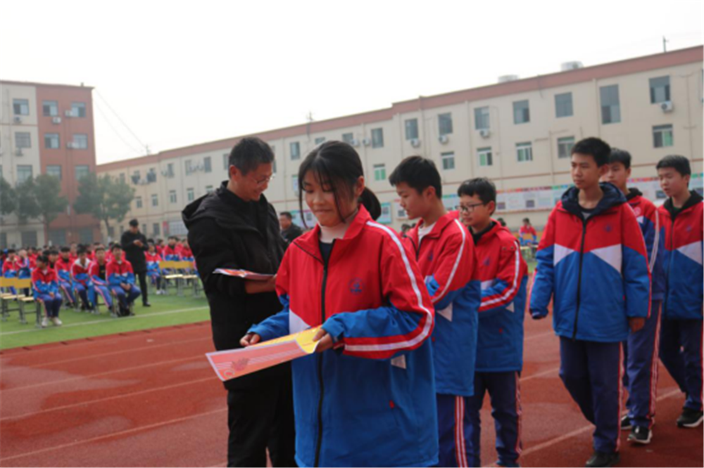 最后,徐校长为毕业班的学子们作动员讲话,号召同学们在中考这一人生转折点,一定要振作精神,拿出自己的勇气和力量,努力拼搏奋斗,努力把握好这最后一百天,用这100天的汗水挥洒,饱满六月收获的果实,成就自己的理想人生。