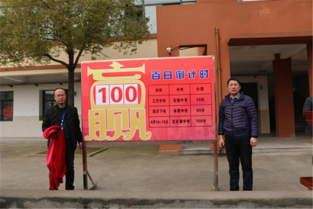接着,徐校长在全体师生们的见证下向毕业班年级组长周进老师授予“百日倒计时牌”,周老师在带领毕业班全体教师们宣誓后,宣布百日倒计时开始。徐校长又继续向毕业班各班班主任授予“班级目标牌”,班主任们发表了自己的“班主任寄语”,表达了自己的对毕业班学子们的远大期望。