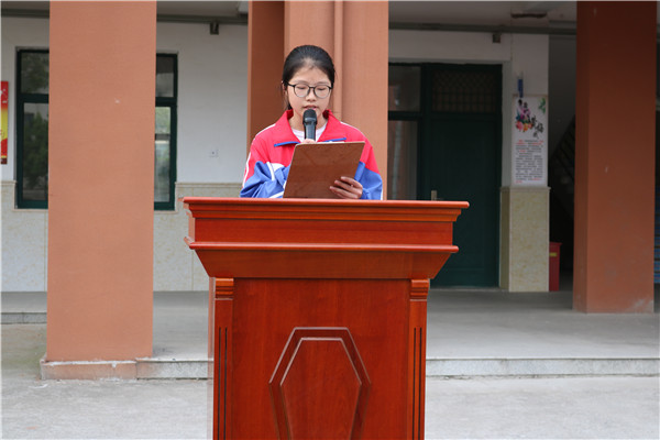 表彰大会上,八(4)班张雅婷同学作为七、八年级学生代表,为期中考试作总结。在发言中,张雅婷同学从课上、课下、作业情况等方面总结了自己学习的经验,并给即将迎接中考的九年级学长学姐送去了祝福。