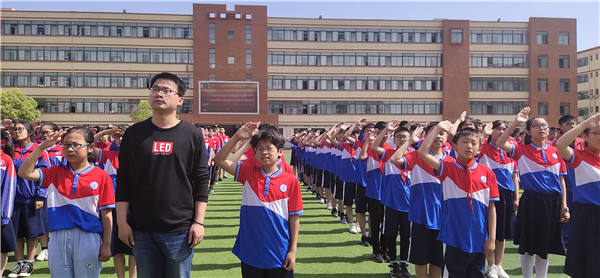 首先在全校师生的注目礼和齐声高唱国歌中,举行隆重庄严的升国旗。