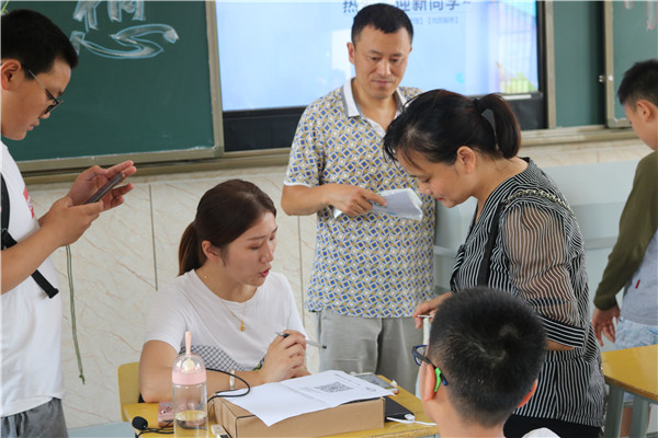 下午1点左右,家长们陪同新生们陆续来校报到,从校外的车辆疏导,到校门的学校各功能区位置的引导,到教室学生的安排,到寝室物品的整理,到食堂的有序就餐都有老师们在热心的服务和亲切的指导,这让新生们深切感受到学校老师们对他们的关心和爱护。新康中学全体教职工人员用自己的行动建立起与学生们心与心的沟通,获得了学生们的信任和依赖。