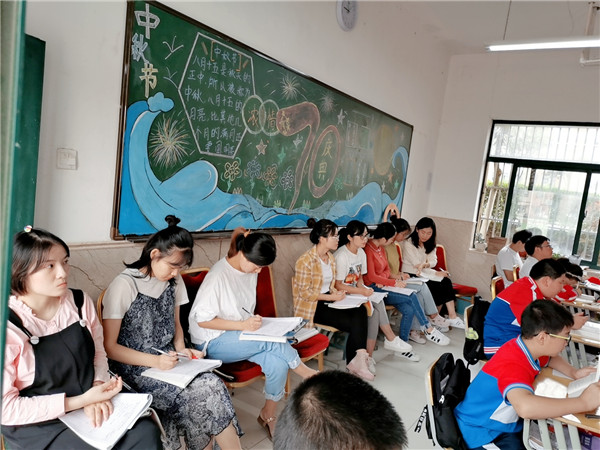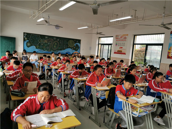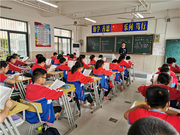 2019年9月20日上午第一节课,肖遥老师在九1班开展了语文公开课,课题《我的叔叔于勒》。9月25日上午第二节课,朱培培老师在七2班开展了语文公开课,课题《散步》,徐学法校长,龚红卫副校长携全体语文组与其他学科老师一起观摩学习。