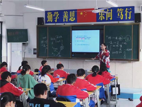 2019年10月16日下午第三节课,杨娟老师在七(6)班开展了生物公开课,课题《人和动物细胞的结构与功能》。李森副校长,龚红卫副校长携全体综合组及其他学科老师一起观摩学习。