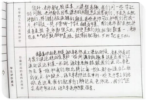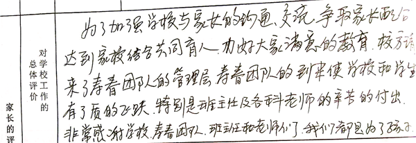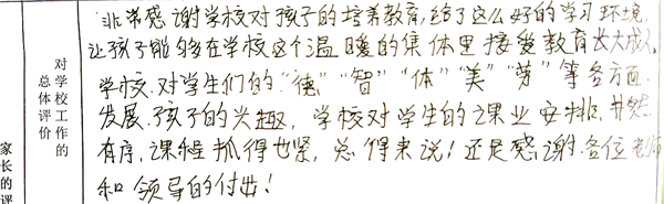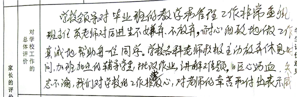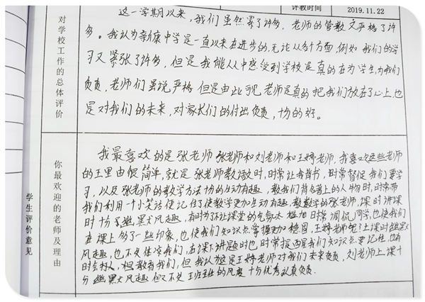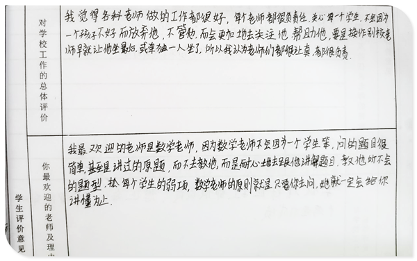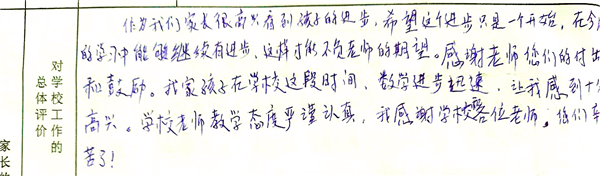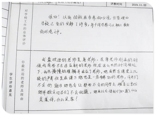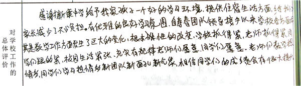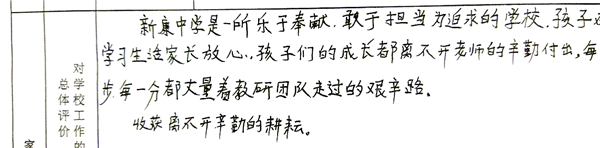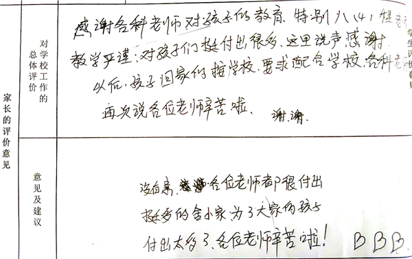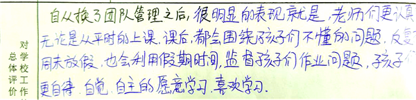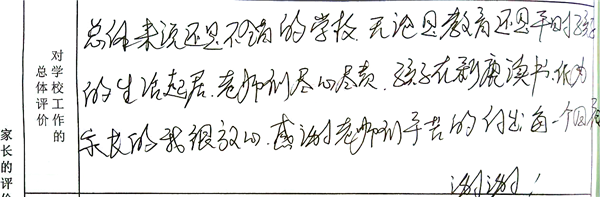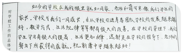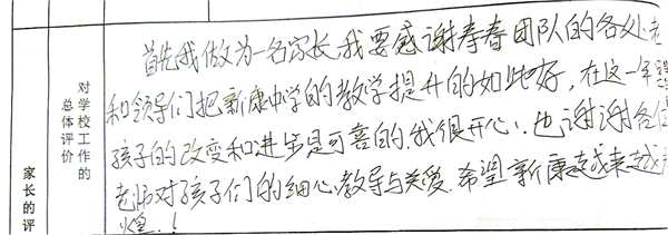 在以徐学法校长为首的寿春团队的倾力打造下,合肥新康中学发生了翻天覆地的变化,赢得了学生,家长的一致好评。为了深入了解教师的教育教学状况,及时征求学生和家长对学校教育教学工作的意见和建议,加强教学管理,合肥新康中学于2019年11月22日开展了本学期教育教学意见征询工作(简称“评教”工作)。学生、家长对寿春团队精心打造后新康中学的蜕变给予高度评价。这既是对我们的肯定,也是对我们的鞭策。我们将把学生、家长的信任、支持、肯定化作我们努力前行的动力。