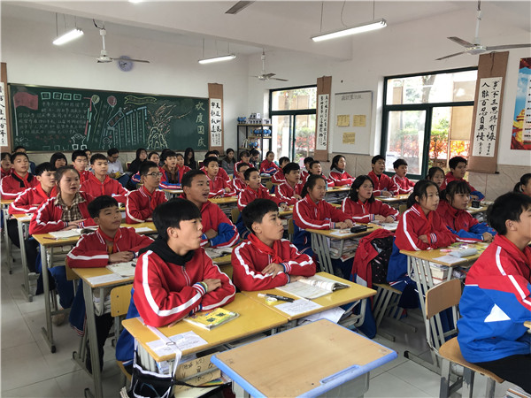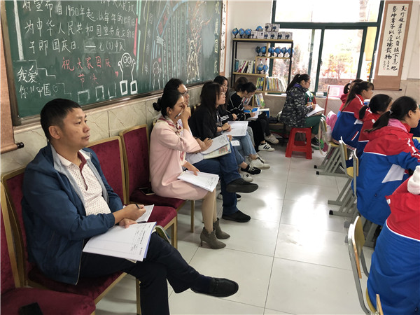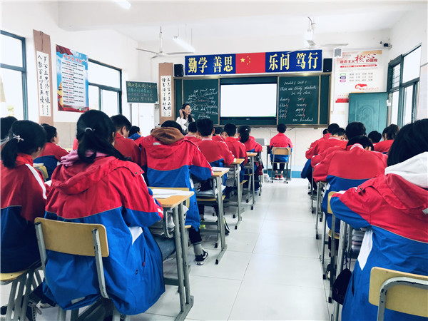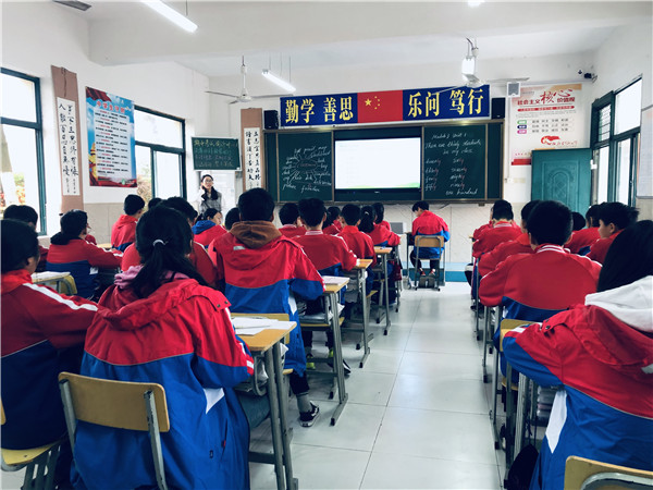 公开课后,英语组立即进行了评课活动。徐校长、龚校长及全体英语组老师参与。