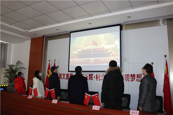 毕业班优秀教师代表黄英子老师担任直播大会的主持,新康中学初中部校长徐学法,党支部副书记陈晓永,副校长李森、龚红卫等领导列位出席。首先进行的是升旗仪式,庄严神圣的国歌声响起,全体师生及家长肃立,共唱国歌。在全国上下共抗肺炎疫情的特殊时刻,中华人民共和国国歌的雄壮之声为所有人注入了战胜一切困难的信心和动力。