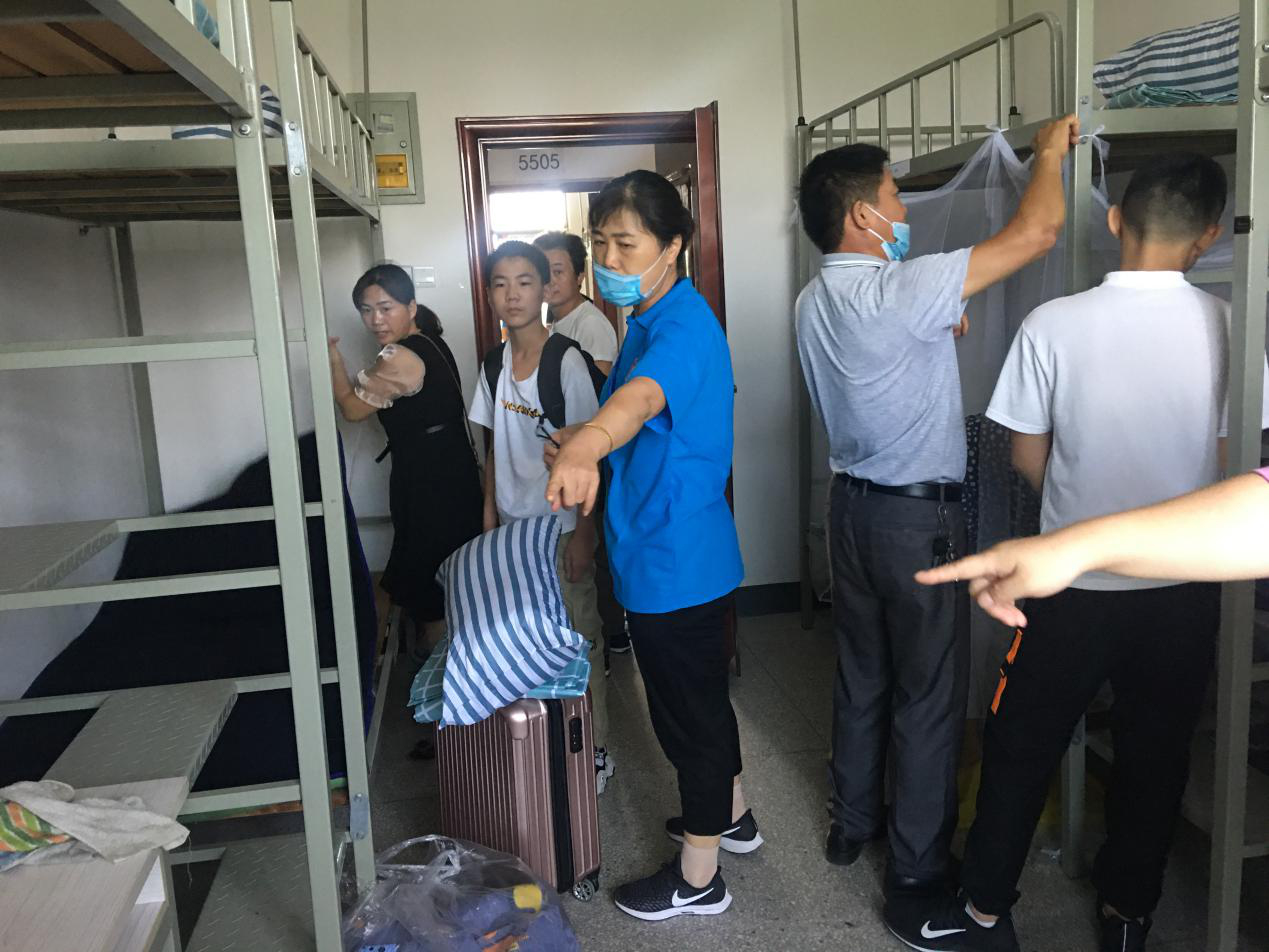 孩子们,来到寝室,等待已久的三位生活老师和一位科任老师,热情地欢迎同学们和家长们的到来。帮助指导学生们整理内容,并耐心地解答家长们关于孩子生活方面的疑问。