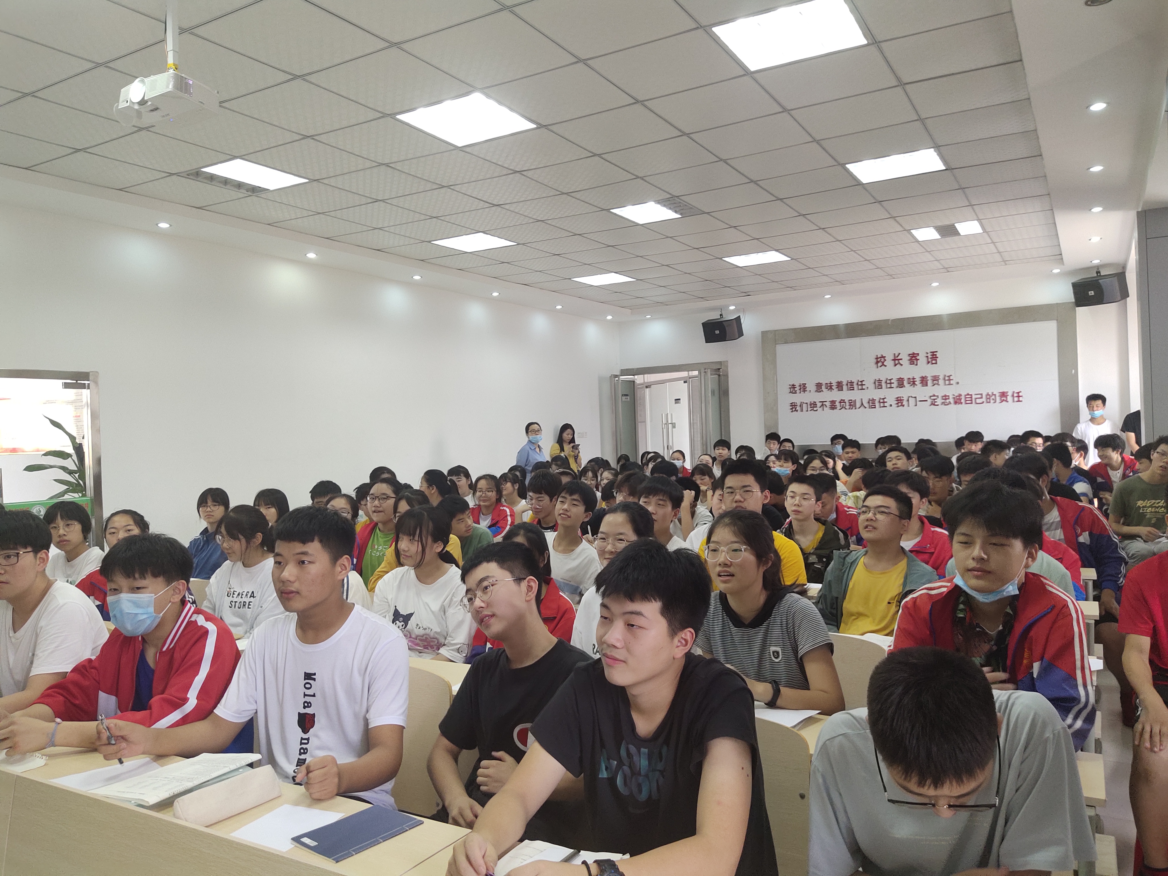 为了缓解毕业班学生的中考压力,2020年6月24日,学校邀请了合肥市团委、合肥四中的专职心理教师陈园园老师给学生带来一场《人生不设限》的主题讲座,九年级所有学生均参与其中。