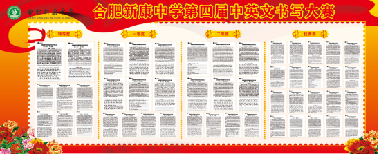 随着最后一节课预备铃响,比赛正式开始,整个学校、教室整齐有序,在比赛过程中,同学们坐姿端正,挥洒笔墨,精益求精,力求完美。英文字母书写标准,中文汉字流畅端正,卷面整洁美观,令人赏心悦目。随后,比赛结束后,由班长收齐所有参赛作品,统一交至教务处;语文组和英语组集体初评;教务处对初评作品再进行复评,最后选出的获奖作品;后期对优秀作品展出并给予获奖学生奖品。