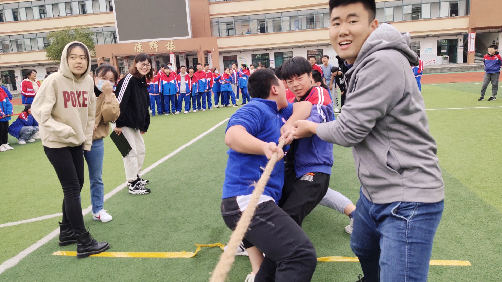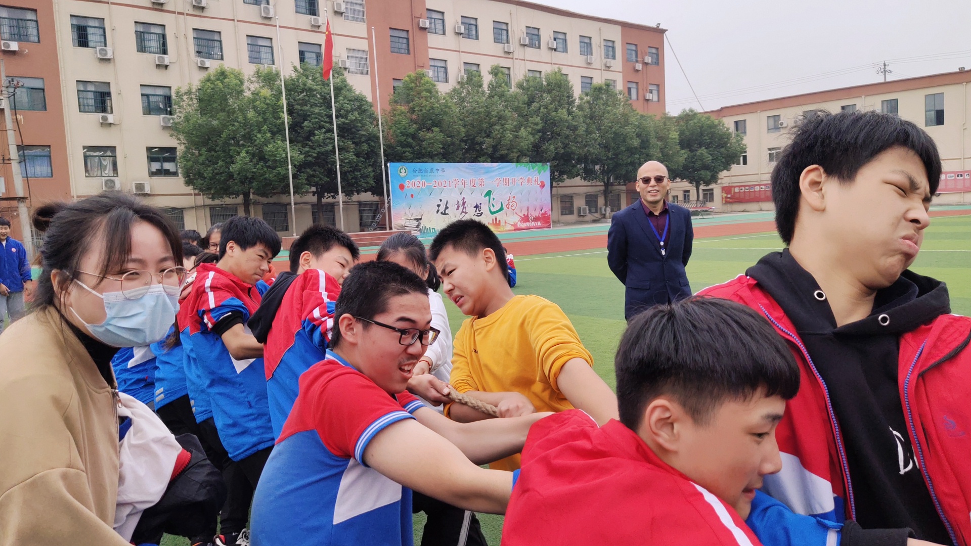 为丰富全体师生的校园文化生活,促进师生、班级之间的交流,发扬团队精神,增强凝聚力,我校于2020年10月26日-30日举办第一届拔河比赛周。