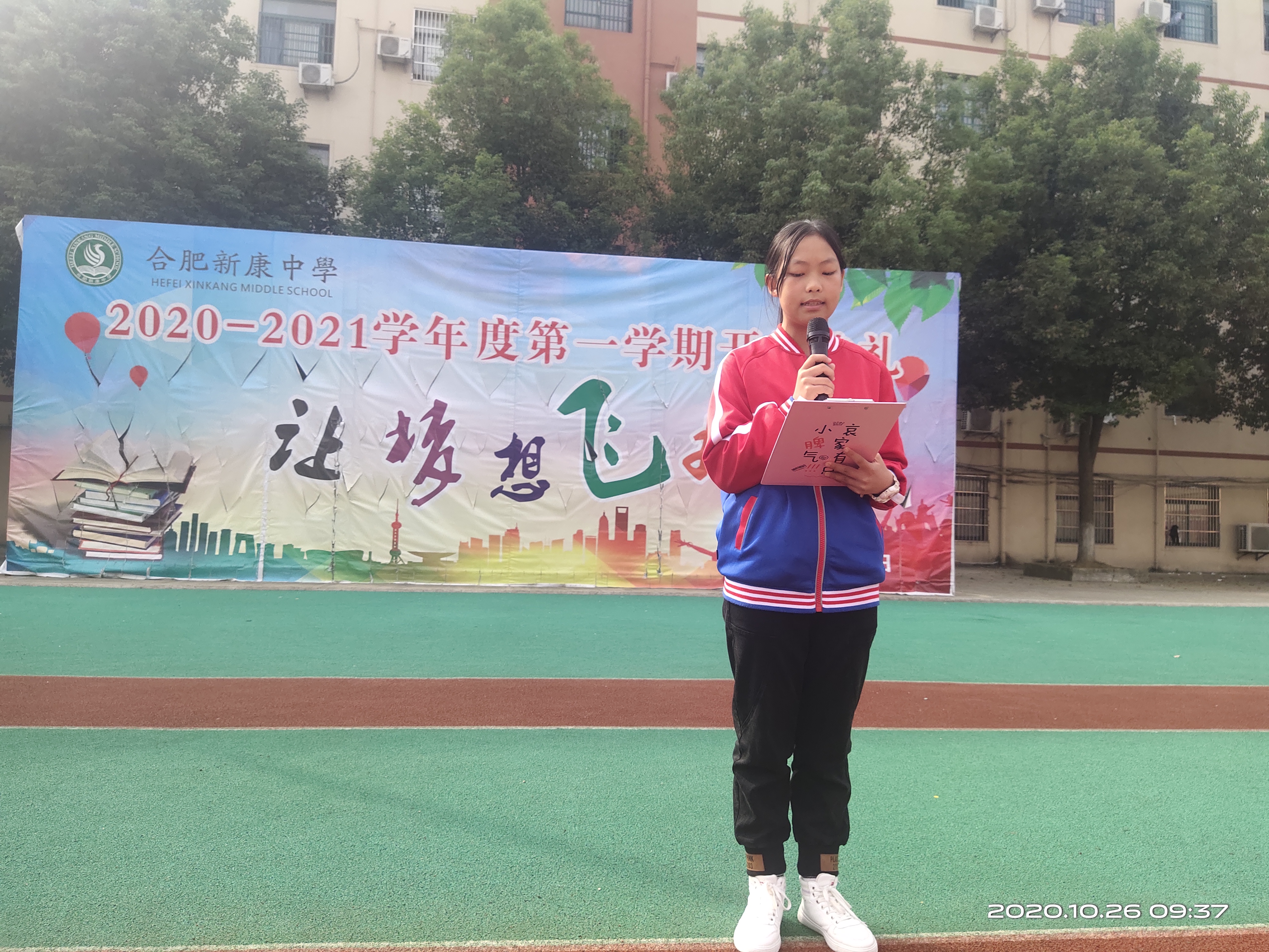 为在期中考试前鼓舞同学们的斗志,营造积极向上、勤思好学的学习风气,合肥新康中学于10月26日上午隆重举行期中考试动员大会。