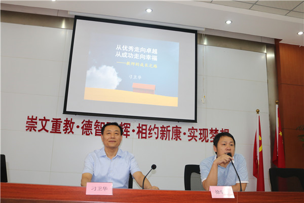 我校高度重视教师的专业成长。2020年暑假组织了为期四天的暑期校本培训,为老师们新学年的工作充电、加油。8月22日上午,在我校初中部校本培训进行的如火如荼之际,阜阳市教育局刁卫华局长应邀莅临我校作《从优秀走向卓越,从成功走向幸福——教师的专业成长之路》主题报告,刁局长的报告将我校2020年暑期校本培训推向了高潮。