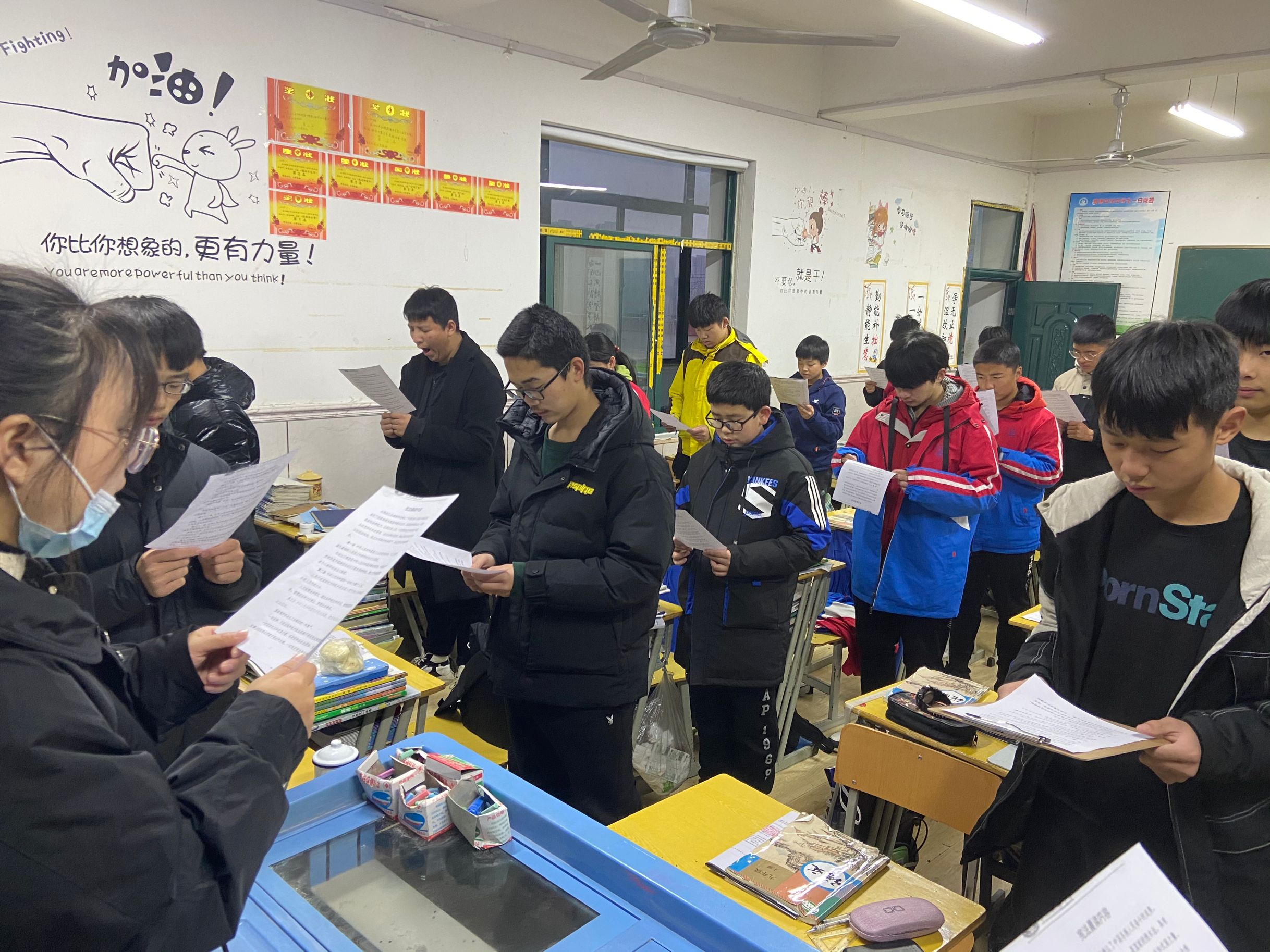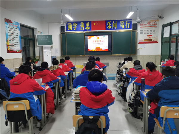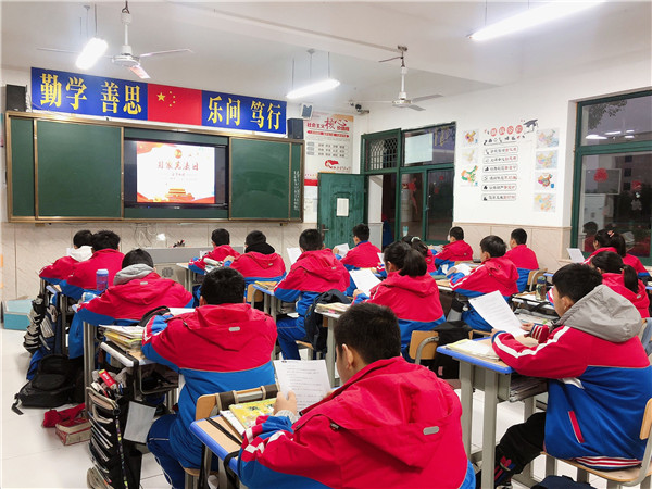 朗朗的宪法诵读声在全校响起;“宪法规定了国家的根本制度和根本任务,是国家的根本法,具有最高的的法律效力······。”同学们坐姿端正,庄重认真,在各班主任的带领下,齐声朗读,声音洪亮。在朗读中,同学们了解了宪法作为国家根本法的重要地位,了解它对于治国安邦和保障公民权利的重要作用,了解了一些最基本的宪法知识。读迎晨曦,当清晨第一缕阳光照进班级,同学们已将宪法的精神深深烙印在心中。