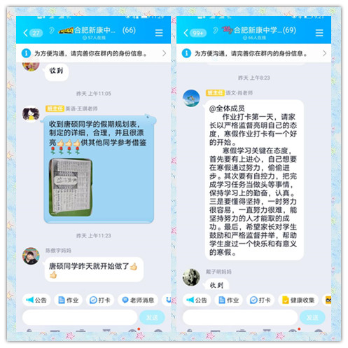 严寒的冬天,即将迎来中国农历上的新年,合肥新康中学的每一位老师,牺牲自己的休息时间,寒假不打烊,为孩子和家长带来了丝丝暖意,为孩子们枯燥的寒假学习带来了一支镇静剂,赢得了家长们的一致好评。