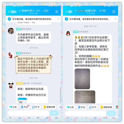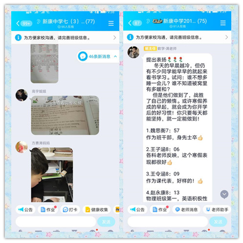 为进一步拉近学校与家庭之间的距离,了解学生寒假生活以及及时为学生答疑解惑,在寒假假期开启的第一周周末,按照教务处要求,合肥新康中学各班级利用腾讯会议APP,召开寒假作业线上会议及时为孩子们答疑解惑,把近期孩子作业完成情况以及存在问题做了一次汇报。