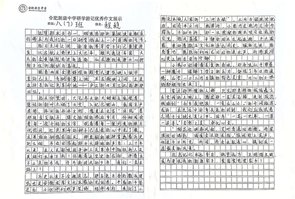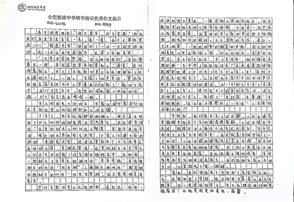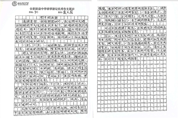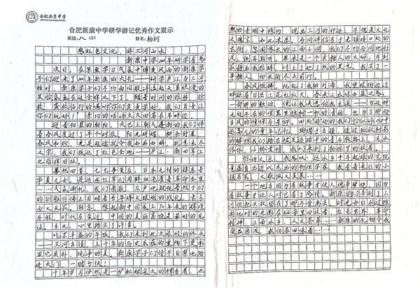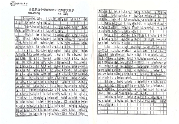 合肥新康中学研学游记优秀作业展示