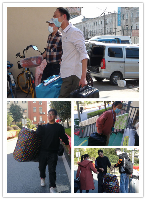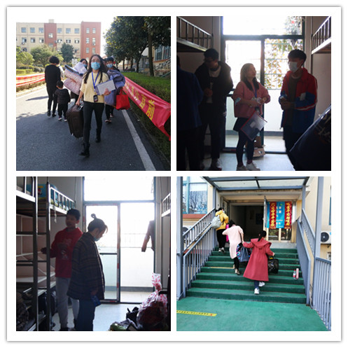 各岗位职责明确。下午一点开始,学校领导与工作人员悉数到岗,各司其职。工作人员现场维持交通秩序,德育处、保卫科等工作人员做好引导、入校检测、消毒,组织教师帮助学生搬行李,整理内务。