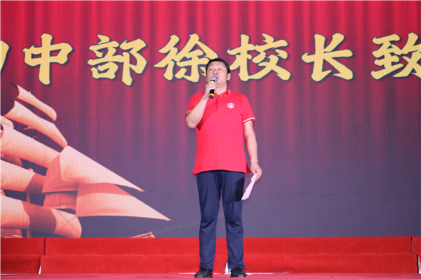 徐校长最后为毕业班学子深情寄语,他说到举办此次晚会有三个目的:一是为了给即将奔赴中考考场的毕业班学子加油鼓劲。二是为了庆祝中国共产党成立100周年。三是为了丰富新康学子的校园生活,让学生们“学习在新康、成长在新康、快乐在新康”。另外,徐校长还送上了一份祝福和两个希望,他祝福我们的毕业班学子每位学生都能心想事成、马到成功。希望每个新康学子都要做一个正直、诚实、善良的人,希望新康的学子们在未来的日子里,不管遇到任何困难都要勇敢面对。