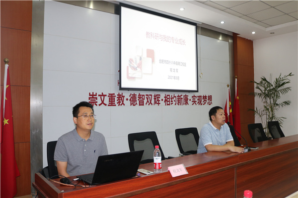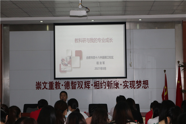 随后,合肥市四十八中嘉陵江校区的程龙军老师作了关于“教科研与我的专业成长”为主题的讲座。程龙军老师是安徽省特级教师,安徽省教坛新星,合肥市程龙军教育名师工作室领衔人,合肥市学科带头人,合肥市优秀教师。长期在一线执教,有丰富的实战经验。