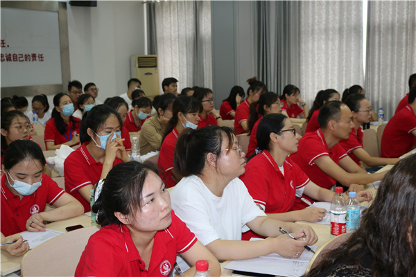 杨主任先以一组29年来班主任工作成果的图片展示了作为班主任的幸福感,让全体教师感动。接下来杨主任从“怎样培养学生的自主管理能力”和“如何转化后进生”两个方面分享了自己的经验和成果。杨主任的整场报告充满激情,有理有据,不仅有理论的总结,更有很多鲜活的案例,案例分享都来源于杨主任亲身的实践,叙述生动,富有感染力,将近3个小时的报告,会场鸦雀无声,全体教师找到培养学生自主管理的方式方法,同时在后进生的转化工作上受益匪浅。