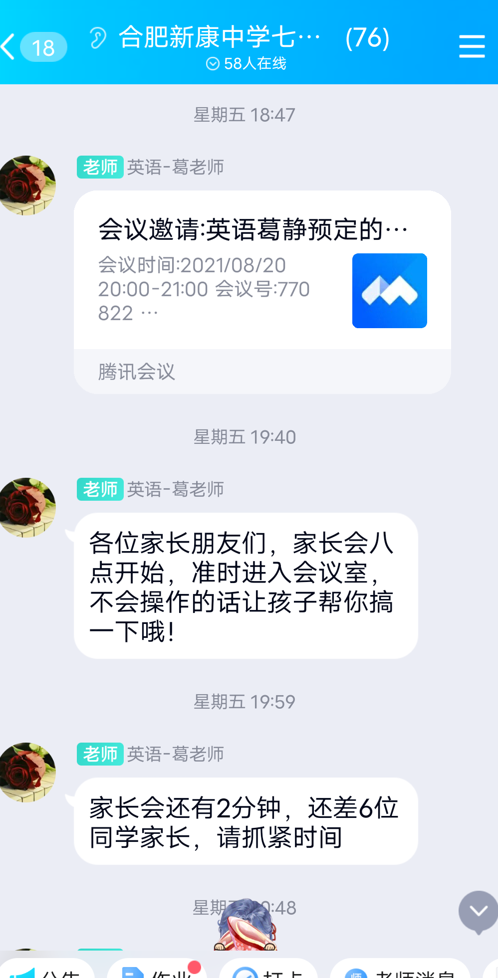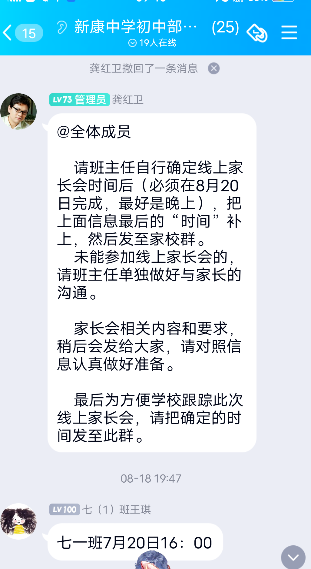 家是同学们温暖的港湾,学校是同学们成长的摇篮。暑期不知不觉已接近尾声,新学期即将如约而至,为了确保我校开学工作顺利开展,让同学们开学后平稳顺利过渡到学校生活。我校根据教体局秋季开学疫情防控文件要求,由各班级班主任于8月20日召开了“开学线上家长会”。