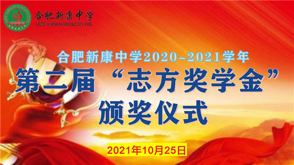 奋刻苦怀初心,鸿鹄高飞任翱翔。沧海扬帆正当时,我辈有志在四方。为在校园营造勤学、乐学、比学的氛围,激励学子们励志图强,合肥新康中学于10月25日上午隆重举行了第二届“志方奖学金”颁奖典礼。此次活动由王琪主任主持。