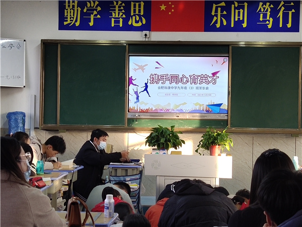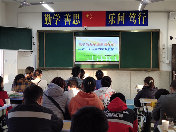随后,各班级班主任分别组织了班级家长会。七年级以“家校共育,共赢未来”为主题,八年级以“行胜于言,提高执行力——家长如何有效陪伴”为主题,九年级以“孩子的九年级需要你们——做一个优秀的毕业班家长”为主题。班主任们向家长汇报了学生在校的学习、生活、成长等情况,点出了学生们身上的优点、闪光点,也指出了他们需要改进的地方。班主任认真总结了同学们在此次期中考试中的表现,对表现优异的同学提出表扬,对所有同学进行了鼓励,更表达了自己美好的期望。班主任们还对家校如何加强沟通合作,家长如何开展家庭教育与家长们进行了交流探讨,对家长们如何营造良好的家庭氛围,如何配合学校的教育工作提出了真诚的建议。班级课任老师也陆续进入班级,向家长们分析了本学科同学们在校的学习情况及期中考试的情况,他们与家长们交流探讨,形成教育共识,为今后开展更为有效的教育合作做了充分的准备。