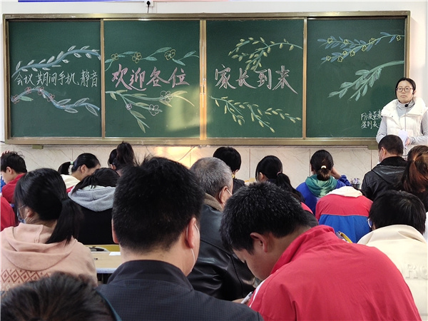 本次家长会,学校精心组织,班主任及课任老师用心准备,开展的形式丰富多样。如在前后黑板上设计的欢迎家长们的图画和标语,班主任老师制作的同学们在校学习、生活和活动的图片视频,有的班级将家长会开展成茶话会的形式等等,这些都让家长们感受到学校和老师们的用心,这些都让家长们无比感动。家长会后,家长们纷纷与班主任和课任老师进一步交流,直至夜幕降临,班级依然灯火通明,家长们久久不散。温暖携手,同心筑梦,一切都让我们坚信——家校合力,家长和老师们将共同为孩子们托起美好的明天。