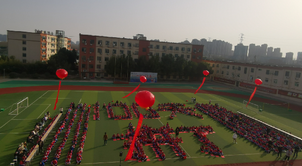 同学们用红色纸板拼成的“100天,拼了!”的大字,这几个字凝聚着毕业班学子奋斗的力量。“100天,拼了!”全场齐呼,斗志昂扬,梦想激荡!