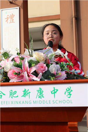 毕业班学生代表周乐和七八年级学生代表金芷月同学发言。