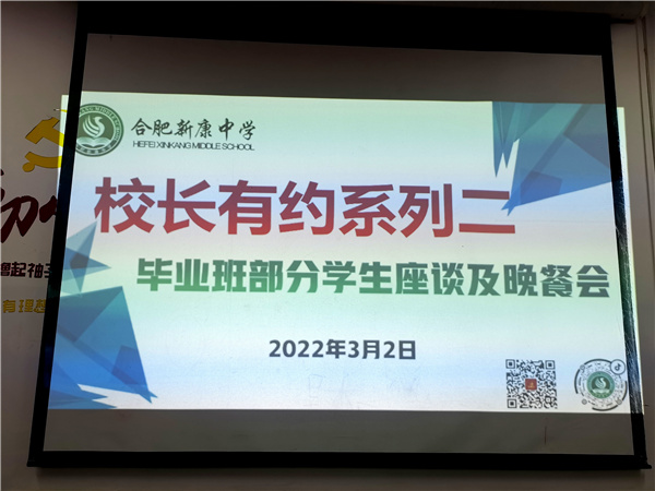 初春的阳光和煦温暖,微风柔软舒畅,碧空如洗,白云飘荡,初春的校园也收获满满!为走近学生,近距离倾听学生心声,搭建学校与学生交流沟通的有效平台,促进学生更好地成长,2022年3月2日,在徐校长的带领下,合肥新康中学组织了“校长有约”系列之毕业班部分学生座谈会及晚餐会。