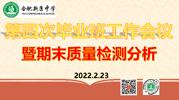 2022年2月23日,为提高我校九年级教育教学质量,奋战2022中考,新康中学在会议室召开了第四次毕业班工作暨期末质量检测会议,校领导和全体九年级教师参加了此次会议,由龚校长主持。
