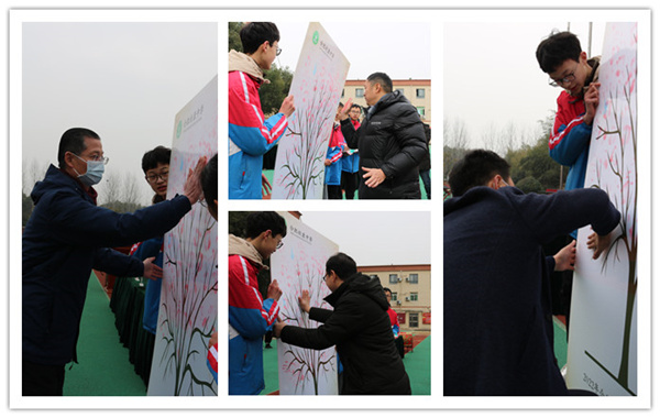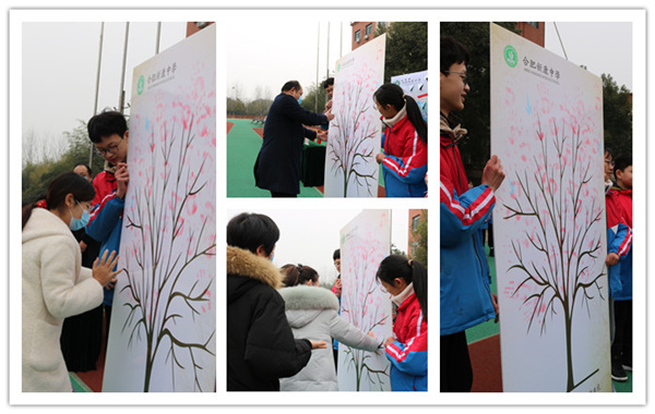 学校领导、教师代表和学生代表在“希望树”上的枝丫上按上手印,希望树在全体新康人的期盼下生出了新芽,长出了枝叶,它还将在全体新康人的辛勤培育下茁壮成长。