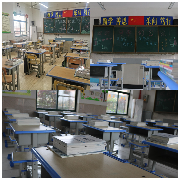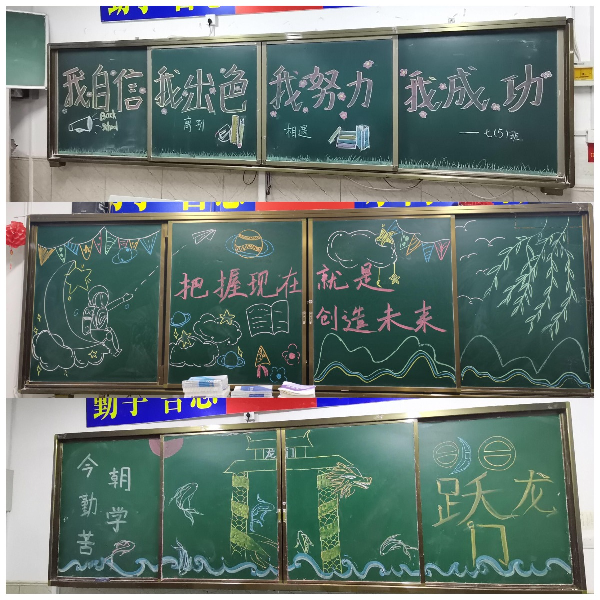 同学们进入班级,班级已经提前打扫,窗明几净,一尘不染,桌面上书本已经摆放整齐。七年级班级黑板上书写着“我自信,我出色,我努力,我成功”;八年级班级黑板上书写着“把握现在,就是创造未来”;九年级班级黑板上书写着“今日勤学苦,明日跃龙门”,进入班级就能感受到家的温馨,进入班级就能看到新学期的新气象。