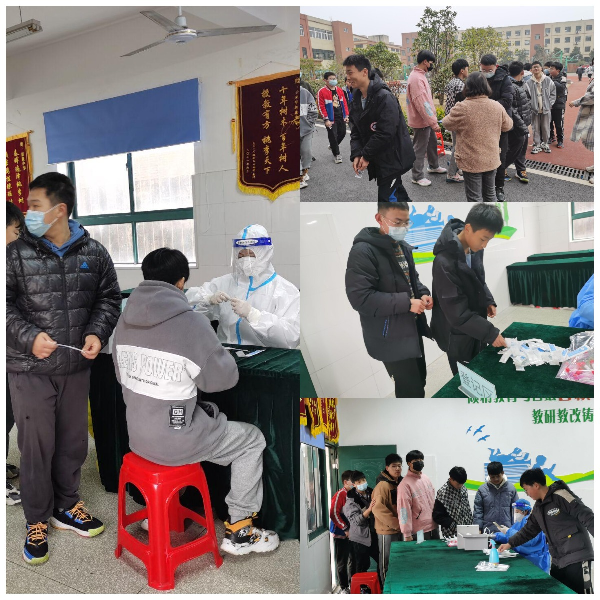 同学们到齐后,在班主任的组织带领下,排列有序地去进行核酸检测。此日返校,学校进行了全员核酸检测,全面做好疫情防控工作,保证学生和教职工的身体健康和安全。