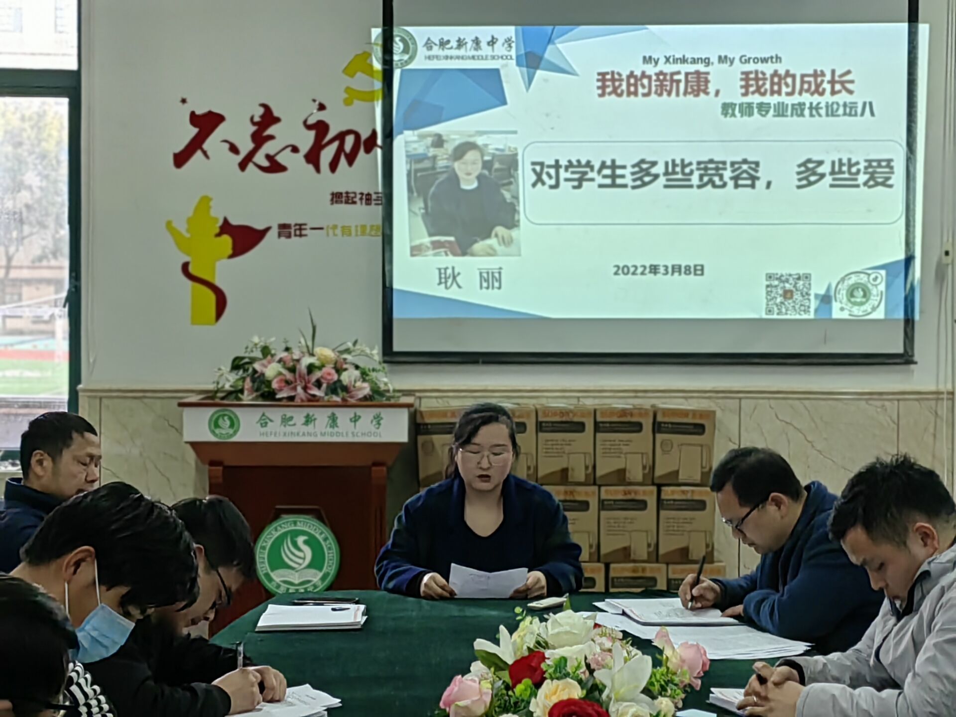 教师是学校发展的基石,是学校教育教学质量的重要保证,高质量的教师团队,离不开高质量的专业培训。2022年3月8日下午,合肥新康中学召开了第八期“我的新康,我的成长”教师专业成长论坛。教务处龚红卫校长主持了本次活动。
