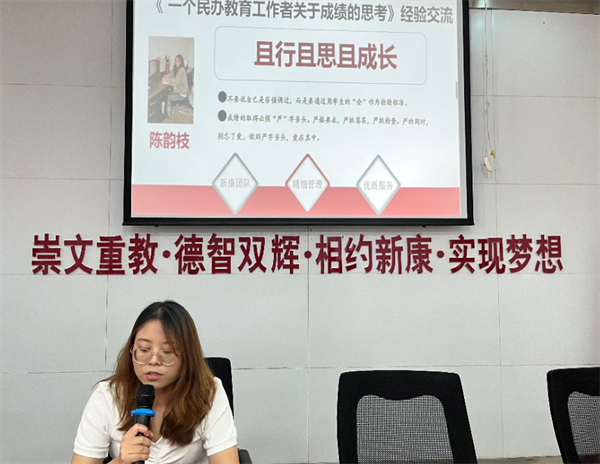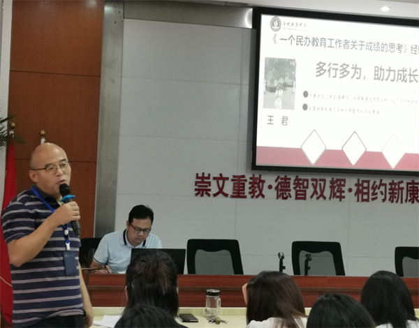 8月24日,合肥新康中学暑假校本培训进入第二天。上午8:30在龚校长主持下,各位老师交流“一个民办教育工作者关于成绩的思考”的学习心得。